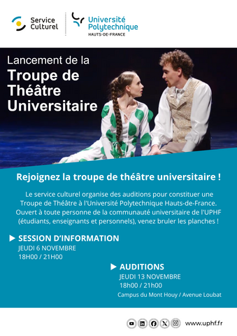 C'est dans ce contexte que le service culturel organise des auditions pour constituer une Troupe de Théâtre à l'Université Polytechnique Hauts-de-France.