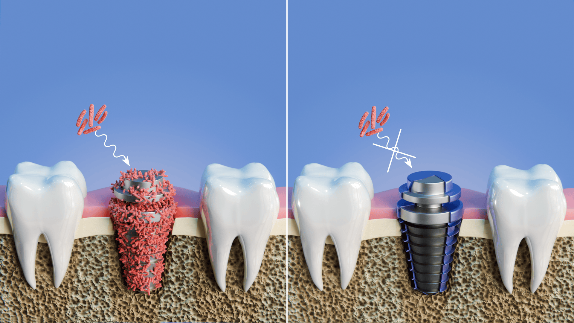 Biomaterials are used to manufacture medical implants, particularly those used in orthopedic surgery (screws, plates...), vascular surgery (stents...) and dental implantology (screws, abutments...). They can be used to replace a lost or diseased biological structure, or to restore function or form. In this way, they help to improve the quality of life of an ageing population. Titanium (Ti)-based alloy implants are widely used in the dental field, where they face real clinical problems linked to slow biological response to their surface, slow osseointegration and bacterial colonization leading to loosening of the implant and consequent loss of viability. The performance requirements for implants are: good mechanical properties, controlled resistance to corrosion in biological environments, antibacterial properties and adequate biological response. Surface modifications are therefore necessary to optimize their functional properties.