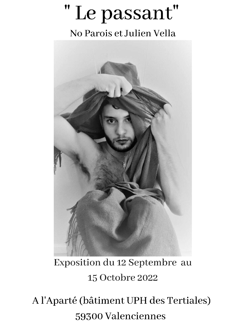 Du 12 septembre au 15 octobre 2022, l'Aparté (site des Tertiales) accueillera l'exposition Le passant, fruit du travail de l'artiste Nolwenn Parois et Julien Vella, modèle et étudiant en arts du spectacle vivant.