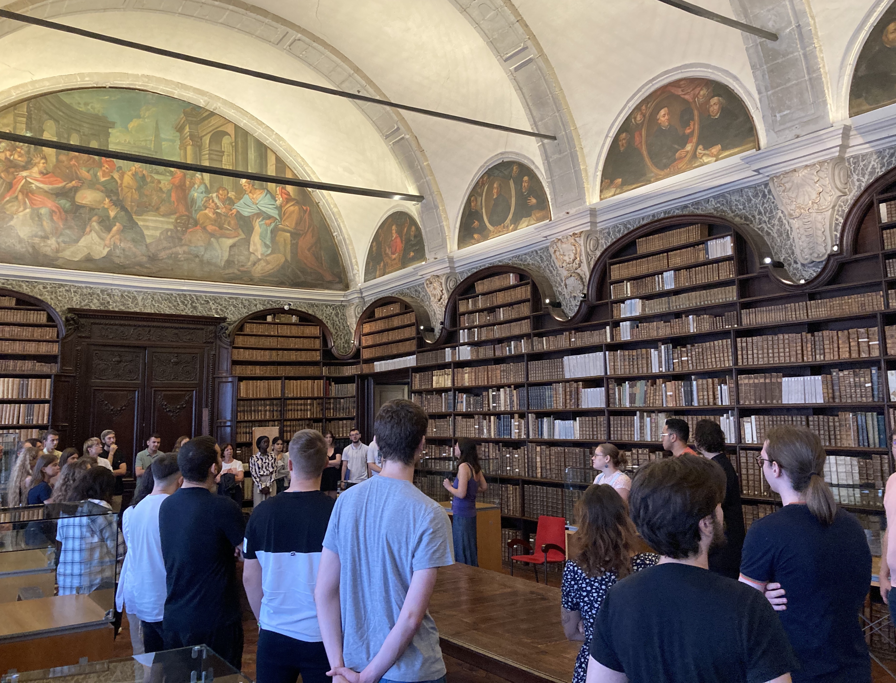Le jeudi 6 septembre, tous les M1 du Master Histoire ont été accueillis par les Archives municipales de Valenciennes. Ils ont d'abord assisté à la conférence de G. Brokaert au sujet de l'organisation des archives publiques en France et des missions d'un archiviste aujourd'hui. Les étudiants ont ensuite bénéficié d'une visite privilégiée de la Bibliothèque des Jésuites, une des rares bibliothèques de ce style à subsister en France dans son état d'origine.