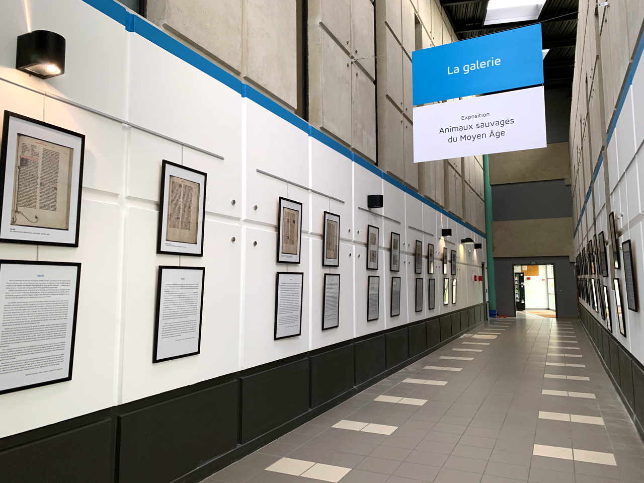 Situé au première étage, dans le prolongement de la passerelle, ce qui était jadis un simple corridor entre deux amphithéâtres héberge aujourd’hui des œuvres de tous types et de tous horizons : créations étudiantes dans le cadre de projets pédagogiques, peintures, photographies ou lithographies d’artistes, etc..