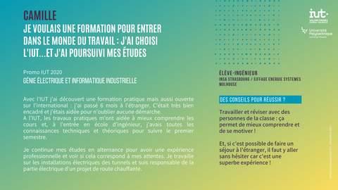 - Camille a choisi une formation qui lui donne accès au monde du travail
