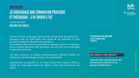 - Brice cherchait une formation reconnue et diplômante dans un domaine très large