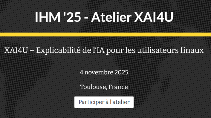 Nous avons le plaisir de vous inviter à participer à l’atelier XAI4U – Explicabilité de l’IA pour les utilisateurs finaux, qui se tiendra dans le cadre de la 36ᵉ conférence internationale francophone sur l’Interaction Humain-Machine (IHM 2025).