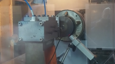 - phase de caractérisation : essais tribologiques de freinage à l’échelle réduite sur un système réel à l’aide de l’UGV (machine d’Usinage à Grande Vitesse) pour crée expérimentalement des particules issues de la dégradation des surfaces frottantes afin de les caractériser (taille, forme, composition) et pour visualiser leur émission (vitesse, concentration et trajectoire).