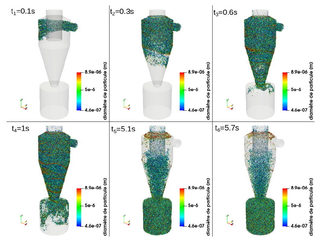 L’objectif est d’effectuer une étude d’optimisation d’un équipement de dépoussiérage, un séparateur cyclonique gaz-particule solide. Une étude numérique est effectuée avec le logiciel OpenFOAM. Le verrou principal est la détermination du modèle permettant de représenter fidèlement la dynamique des particules considérées. Une étude expérimentale avec la mesure des champs de vitesse de l’écoulement et la granulométrie des particules permettra de valider les résultats numériques. Des solutions seront également proposées pour améliorer l’efficacité de séparation.