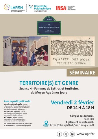 4ème séance - Séminaire Territoire(s) et genre : « Femmes de Lettres et territoire, du Moyen Âge à nos jours »