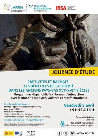 La journée d'études traite des systèmes de capture et de captivité rémunérées à l'encontre des militaires et des populations civiles en Europe du Nord-Ouest aux 16ème et 17ème siècles, au moment où les Européens développent ailleurs la traite esclavagiste atlantique. Cas d'études et discussions permettront d'analyser ce phénomène violent de privation de liberté et de rachat entre populations voisines dans un contexte de guerres locales.