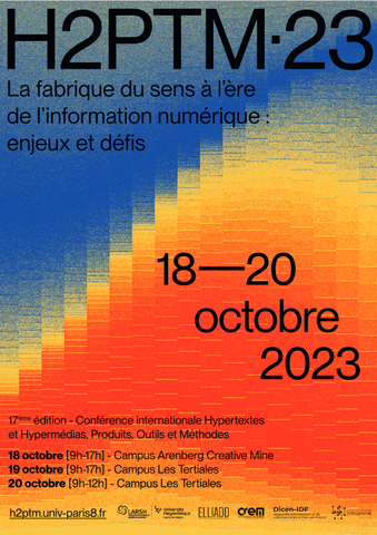 Organisé par un consortium de plusieurs universités françaises, H2PTM se veut un lieu d'échanges entre diverses disciplines : les sciences de l’information et de la communication, l’informatique, la sémiotique, l’art et les sciences cognitives … Il réunira des chercheurs français et internationaux qui rendront compte des derniers avancements de la recherche et du développement des hypertextes et hypermédias dans des domaines variés. Cette dix-septième édition propose un éclairage plus approfondi sur la fabrique du sens, ses processus, ses territoires, ses acteurs humains ou non, à l’heure où l’on sait qu’Internet et les réseaux sociaux y contribuent plus que tout autre support, pour le meilleur et parfois pour le pire.