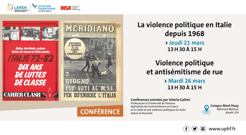 Conférence Conférences sur la violence politique en Italie 2 conférences, animées par Madame Valeria Galimi, Professeure à l'Université de Florence, conférencière invitée du CRISS Plus d'informations