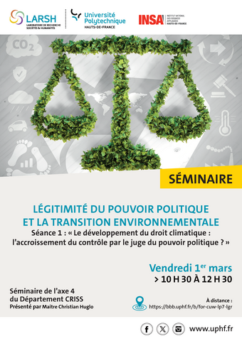 Ce séminaire pluridisciplinaire propose de travailler sur les arguments, les processus et les moyens de légitimation et de délégitimation du pouvoir politique qu’impliquent l’élaboration et la mise en œuvre des programmes politiques de transition liées aux enjeux environnementaux.
