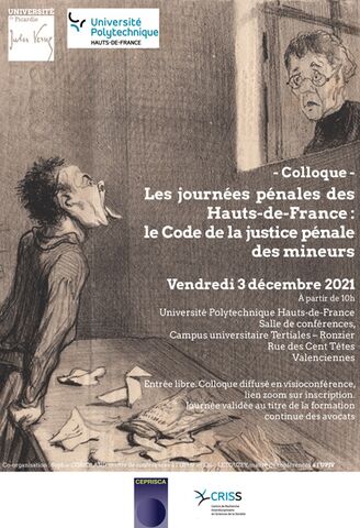 Colloque : le Code de la justice pénale des mineurs "Les journées pénales des Hauts-de-France : le Code de la justice pénale des mineurs", 3 décembre 2021 Colloque journées pénales 3 décembre 2021 programme.pdf (pdf 786.66 Ko) A lire aussi 5ème journée d’études régionale en droit du travail "> 5ème journée d’études régionale en droit du travail 18.03.2022 Histoire de mains "> Histoire de mains 18.03.2022